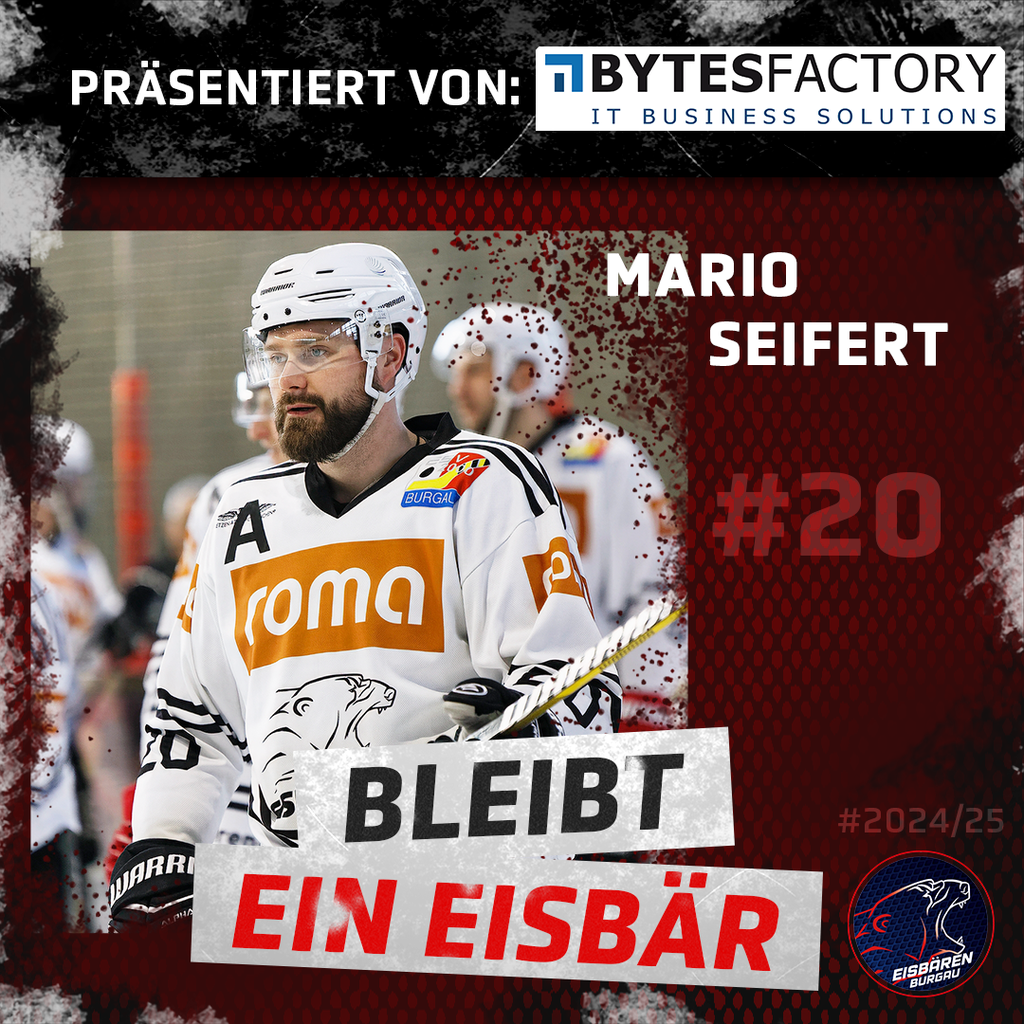 Mario Seifert wird auch im siebten Jahr in Folge als Fels in der Burgauer Abwehr ein weiterer wichtiger Baustein der Verteidigung sein. Einst 2018 von den Pirates aus Buchloe gekommen, zog es den mittlerweile 30-Jährigen in den Landkreis, wo er schnell zum unverzichtbaren Rückhalt für die Eisbären avancierte. In 140 Punktspielen lief der 1,82 m große und 96 Kilo schwere Verteidiger für die Eisbären auf und erzielte beeindruckende 129 Scorerpunkte (40 Tore; 89 Vorlagen). Mit seiner physischen Präsenz und seinem starken Spielaufbau hat Seifert nicht nur seine Teamkollegen, sondern auch die Fans immer wieder begeistert. In der abgelaufenen Spielzeit reihte er sich mit 31 Scorerpunkten in 31 Partien (7 Treffer; 24 Vorlagen) als punktbester Verteidiger in die Schützenliste ein. Seit drei Jahren trägt er zudem das "A" auf der Brust. Somit dürfen sich die Fans und gegnerischen Spieler auch in der nächsten Saison auf Marios gefürchtete Schlagschüsse von der blauen Linie freuen.
